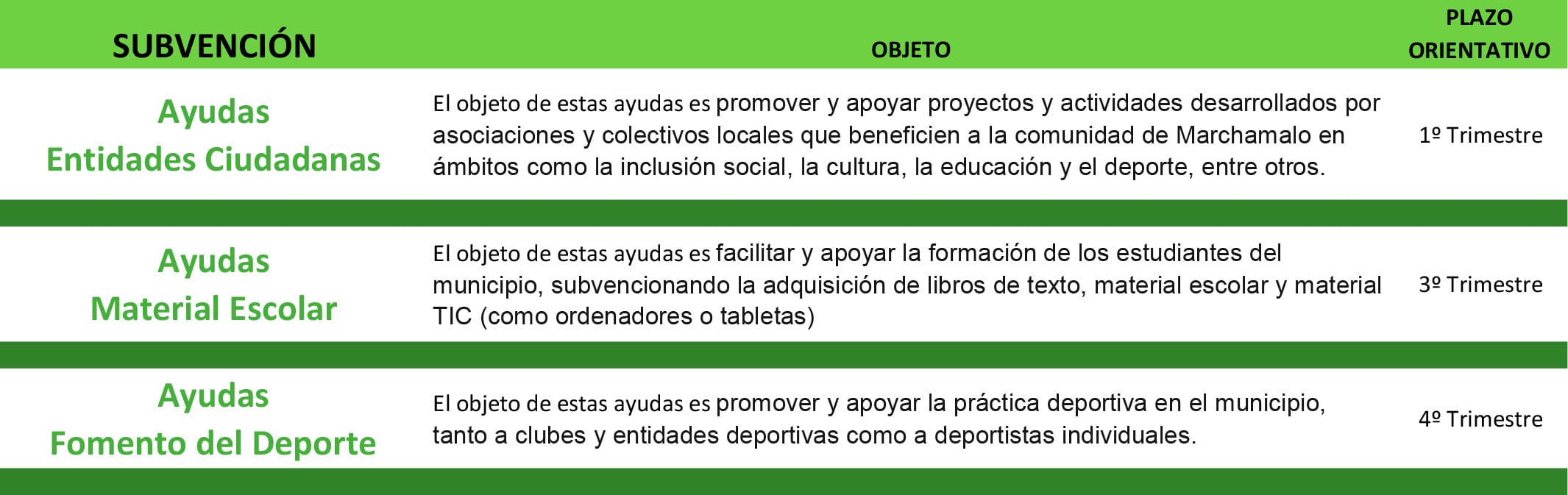 Líneas de subvención del Ayuntamiento de Marchamalo: